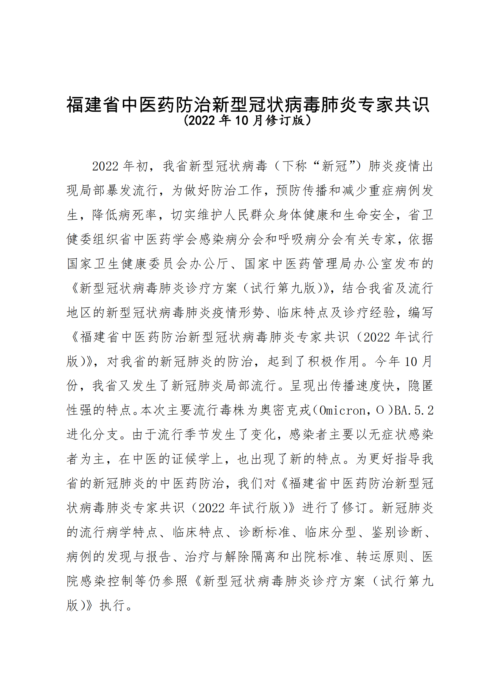 福建省中醫(yī)藥防治新型冠狀病毒肺炎專家共識(shí)(2022年10月修訂版).pdf